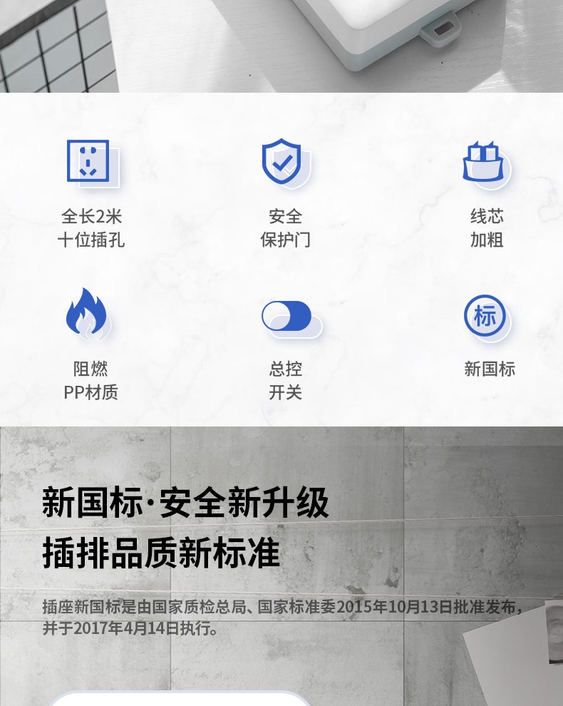 得力18251插座_2+2_2米_PVC袋裝(白)