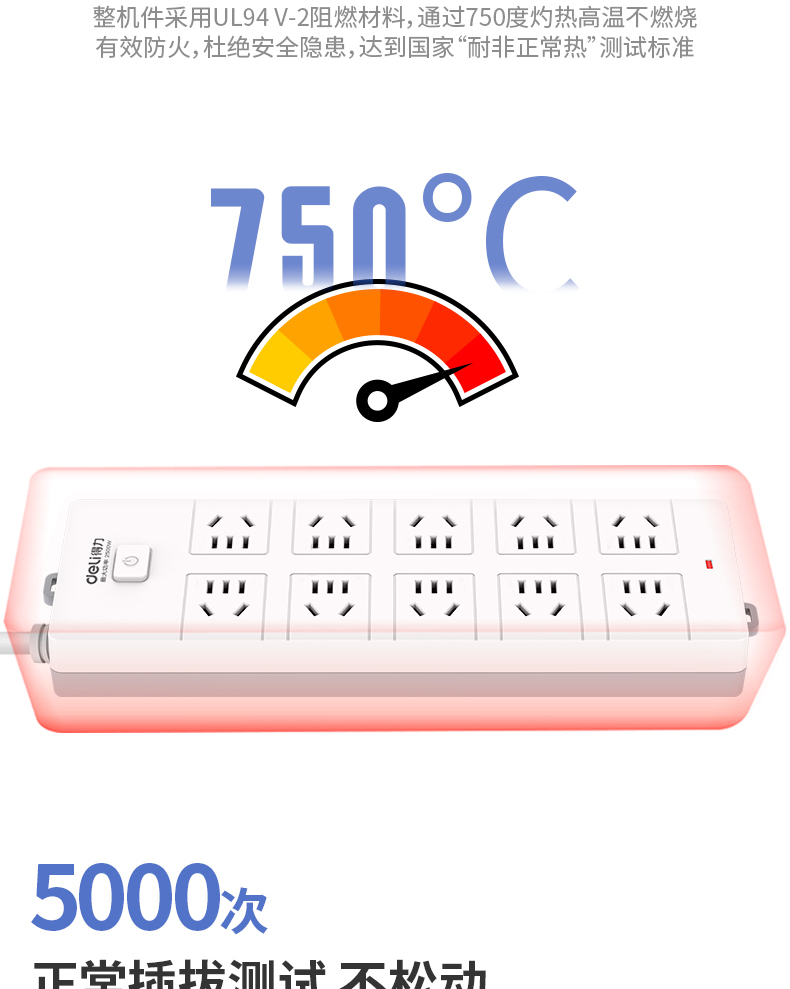 得力18275-05插座_10組_5米_PVC袋裝(白)