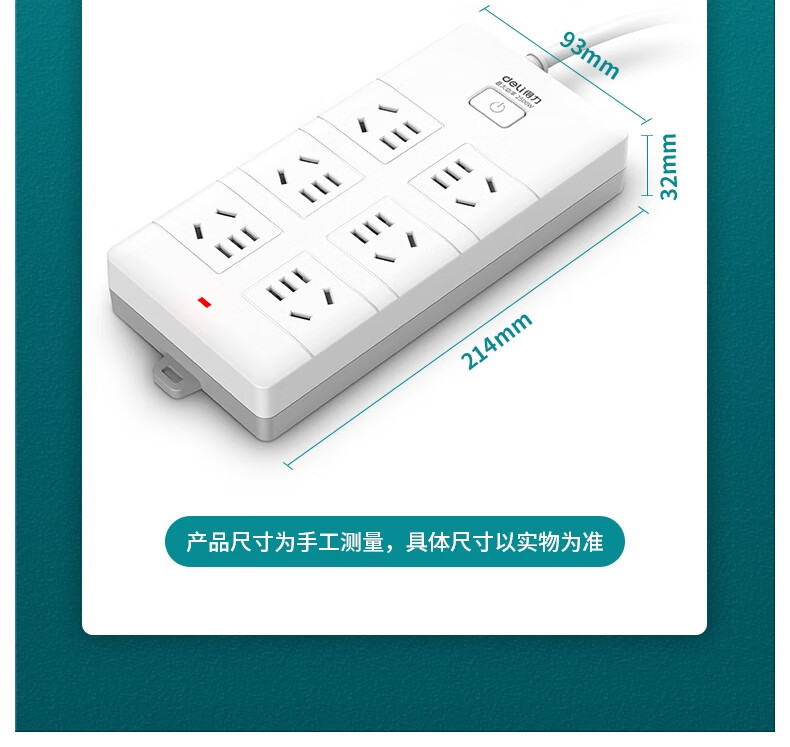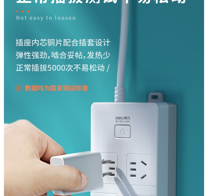 得力18168-05插座_6組_5米_PVC袋裝(白)