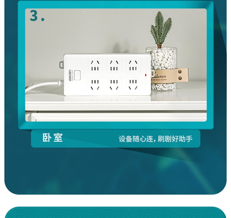 得力18168-03插座_6組_3米_PVC袋裝(白)