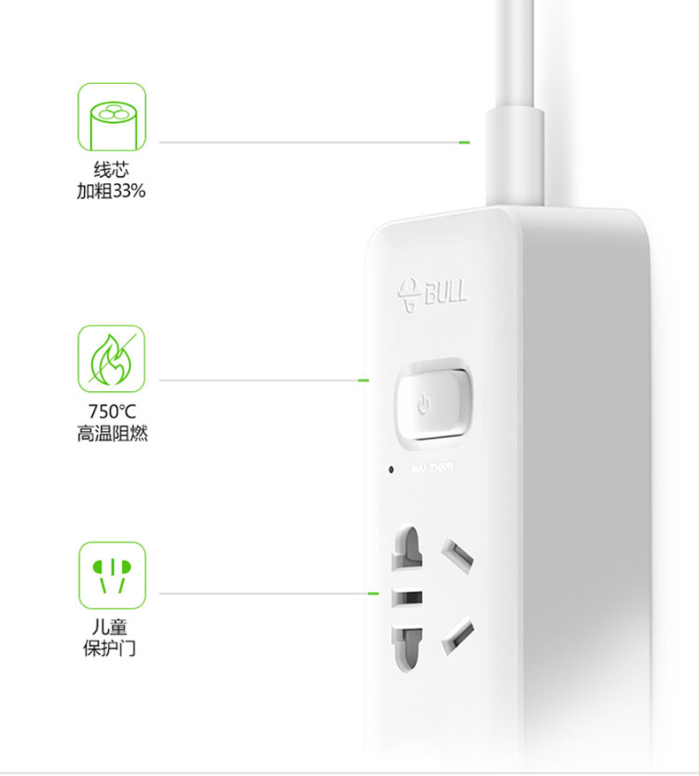 公牛GNV-UUA123插線板1.5米 3位+2位USB