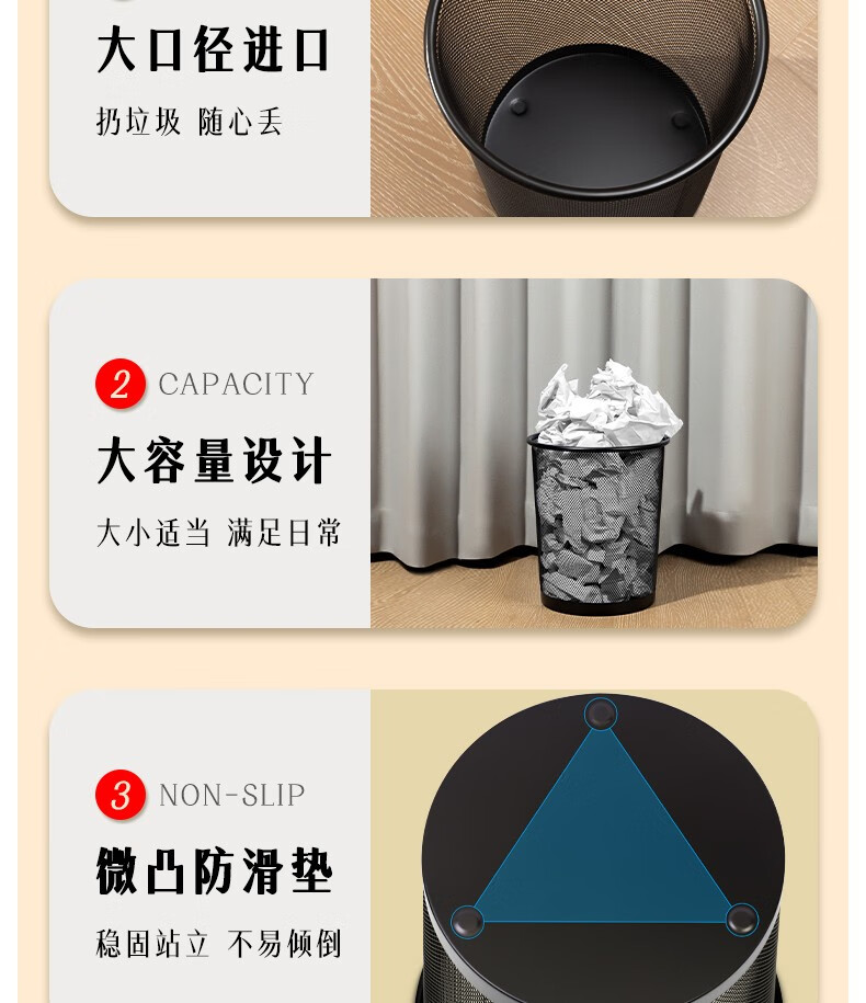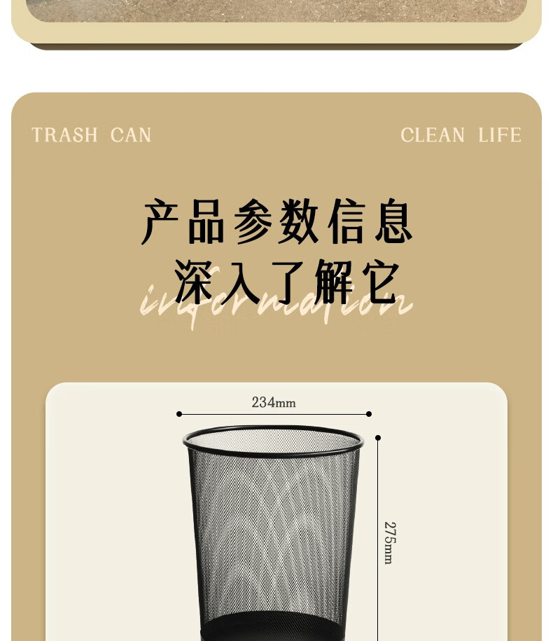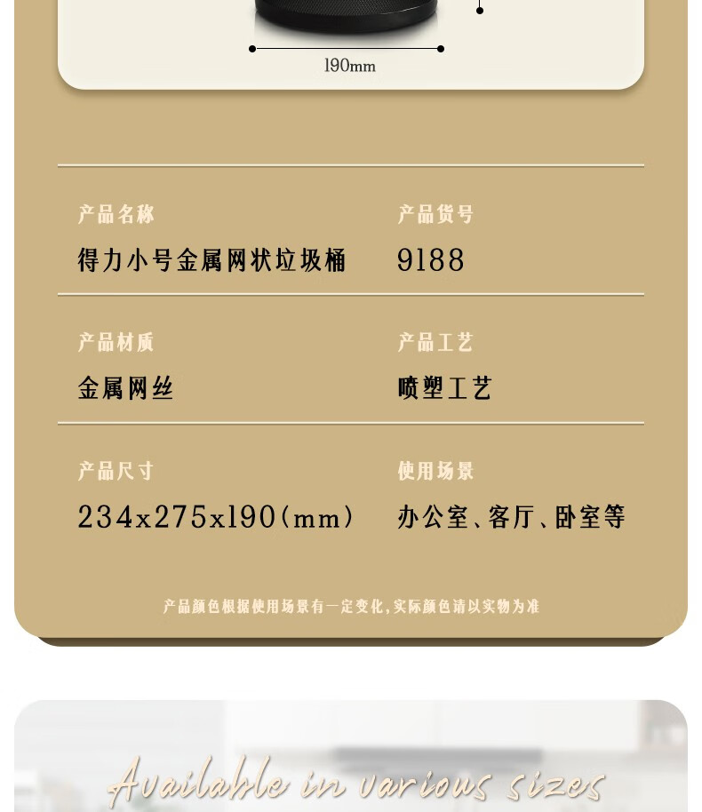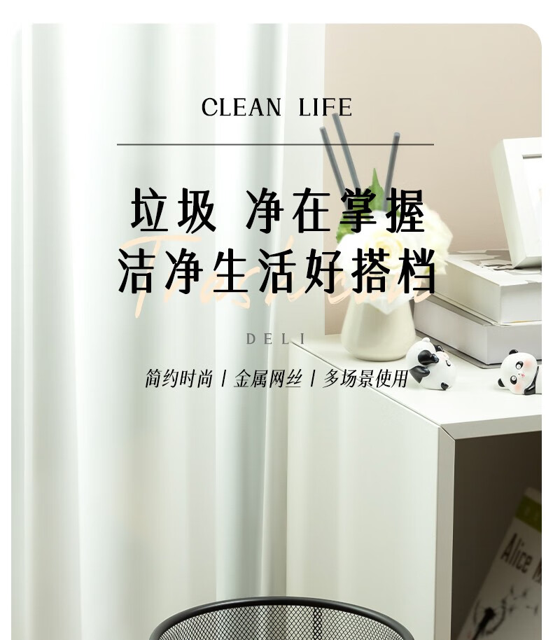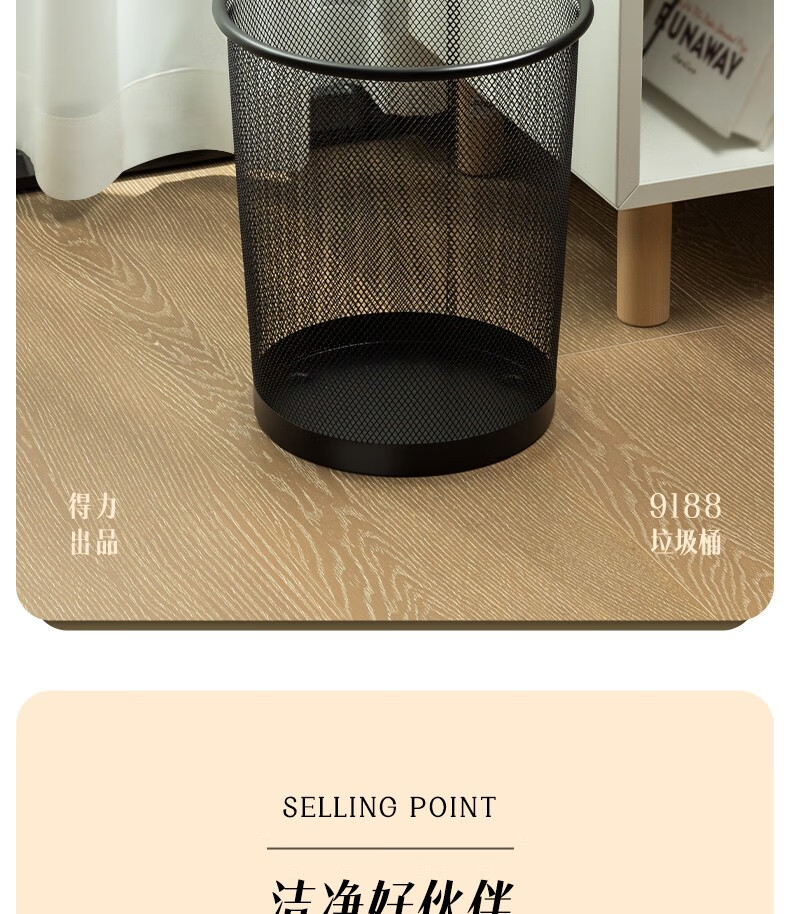 得力9190中號(hào)金屬圓紙簍266x218x280mm