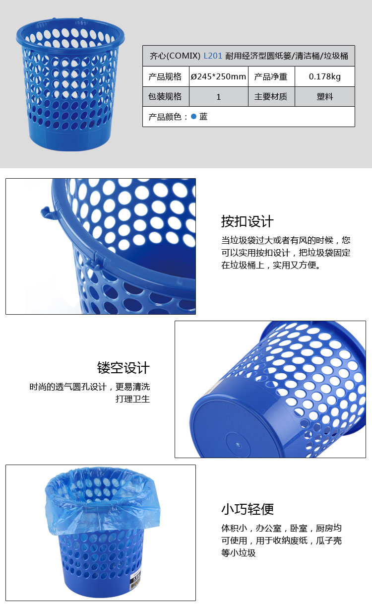 齊心L201圓形經濟型紙簍藍色?245*250mm*10