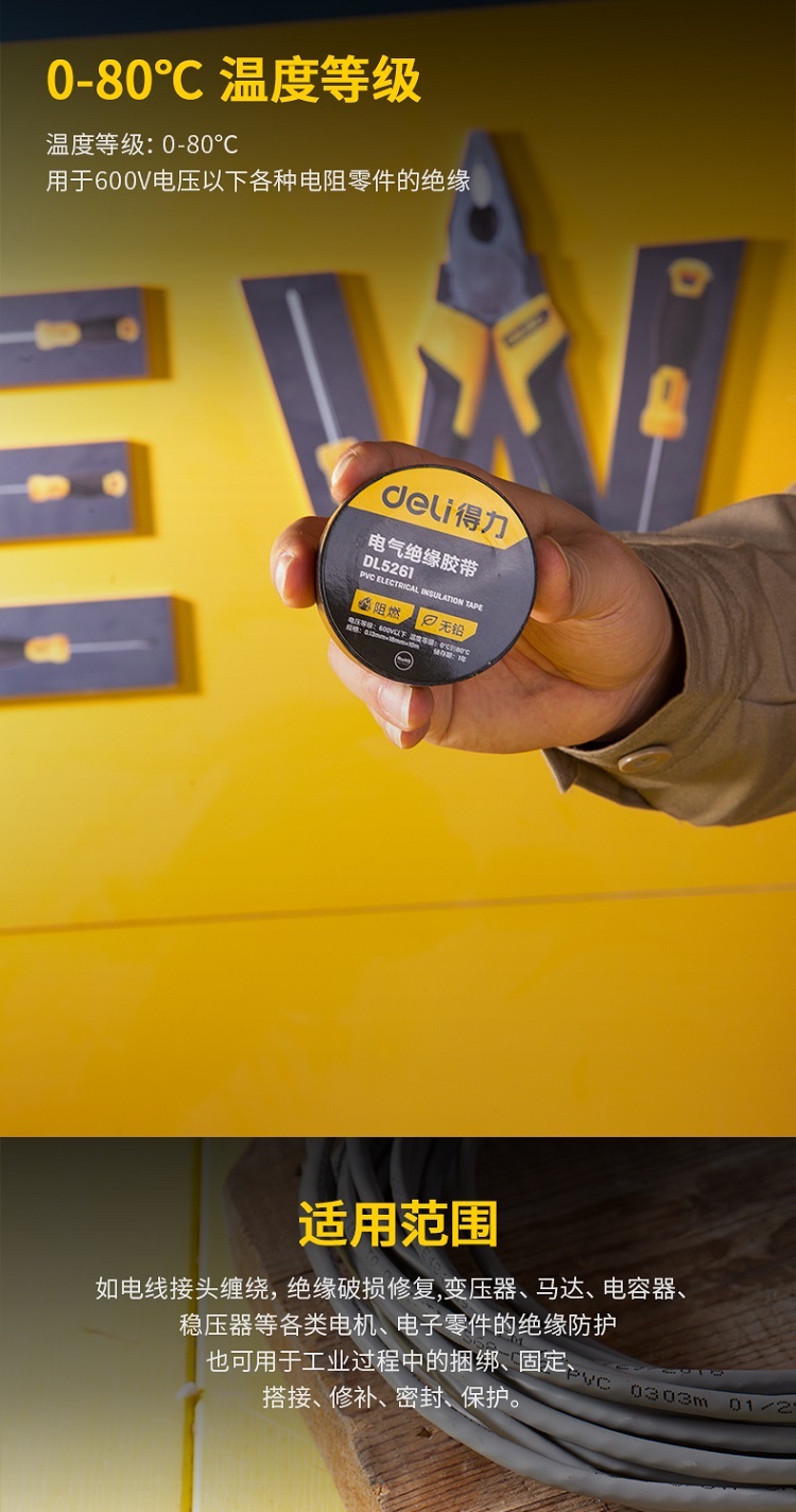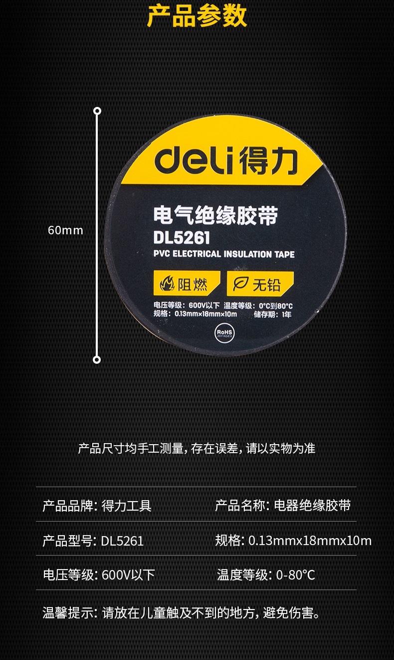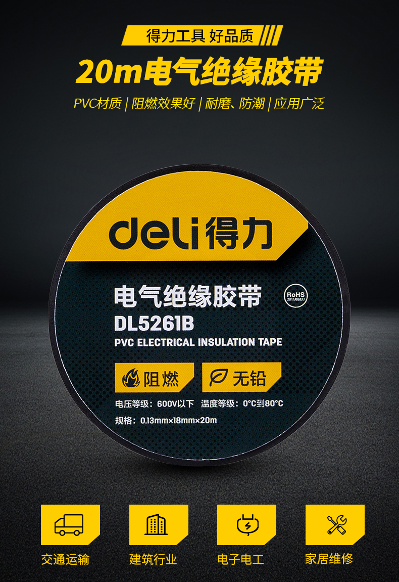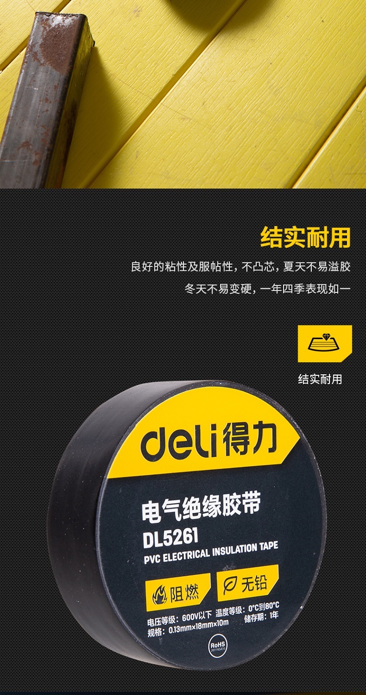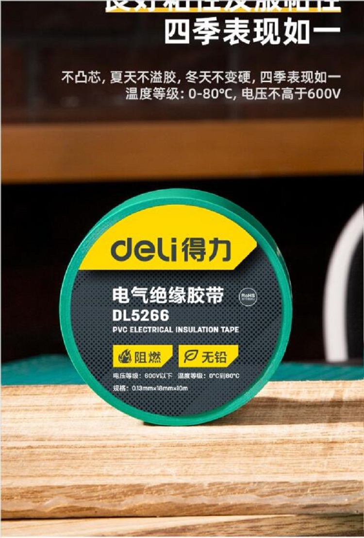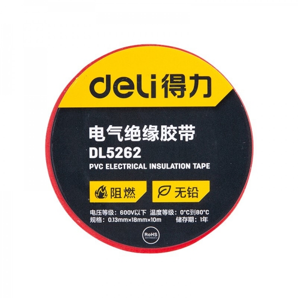 得力DL5262絕緣膠帶(紅)0.13mmx18mmx10m