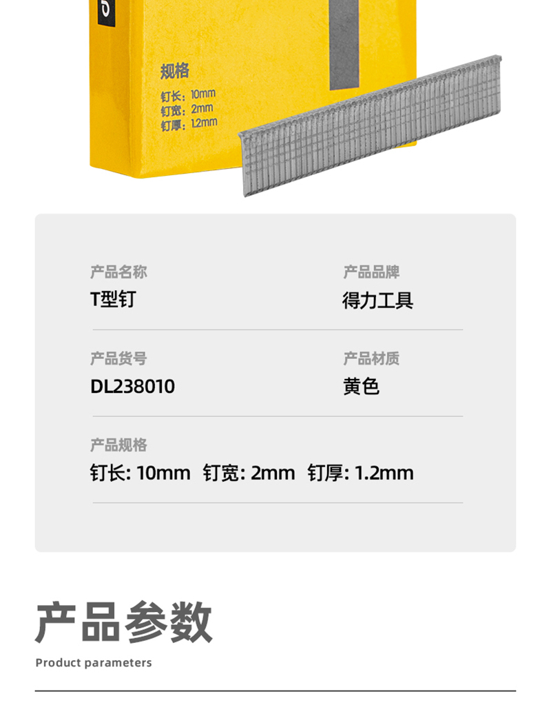 得力DL238010T型釘(銀)10x2x1.2mm