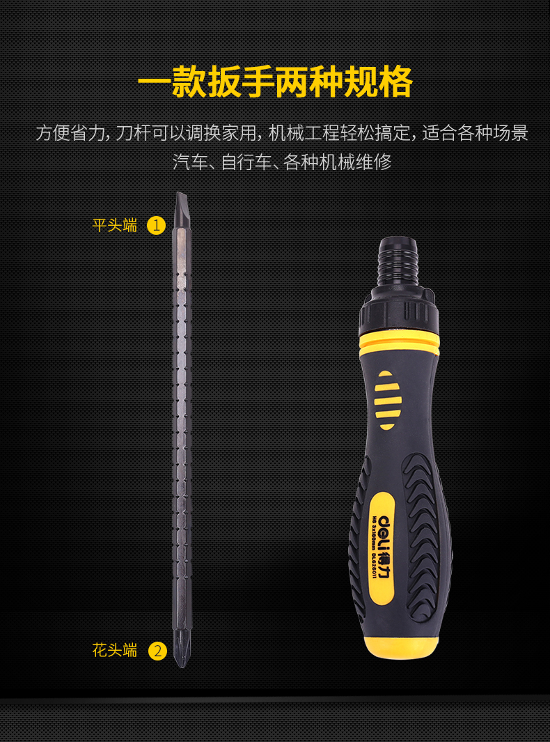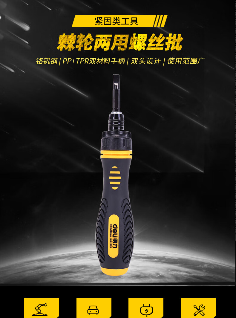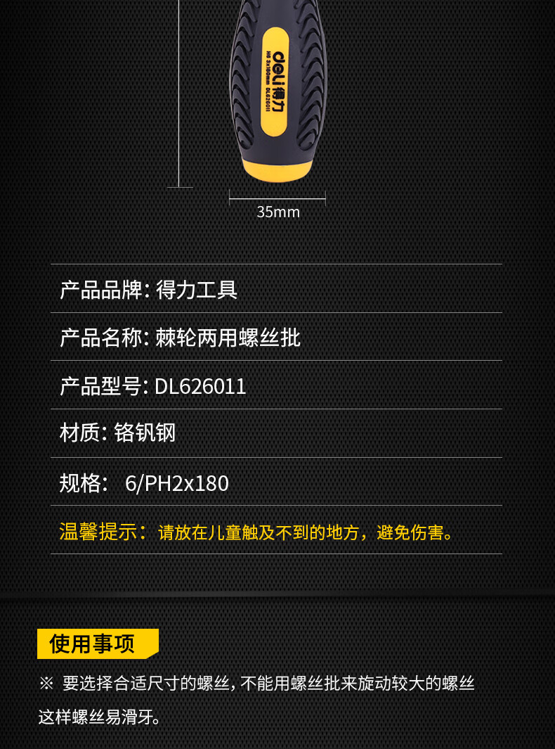 得力DL626011兩用棘輪螺絲批鉻釩鋼(黃)6/PH2x180mm