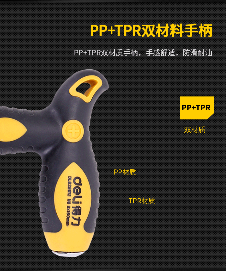 適用類型 : 得力DL626012T型兩用棘輪螺絲批鉻釩鋼(黃)6/PH2x160mm