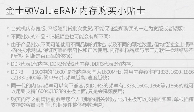 金士頓DDR4 2666 16GB 內存條 臺式