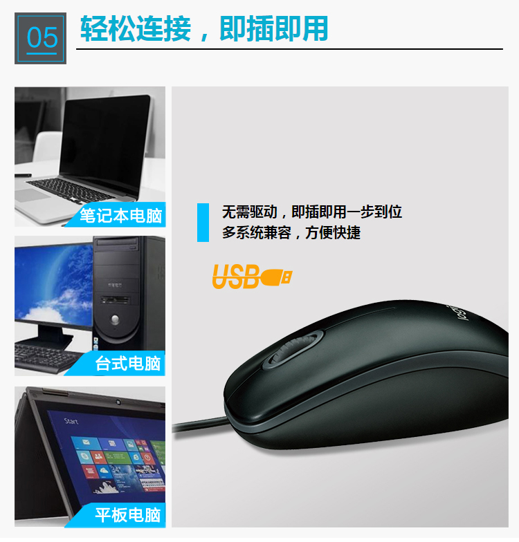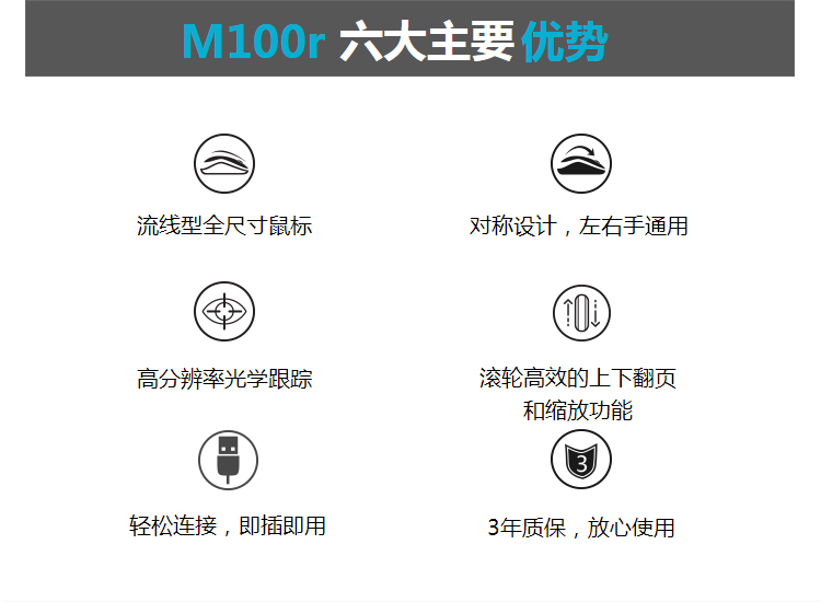 羅技M100r有線鼠標黑
