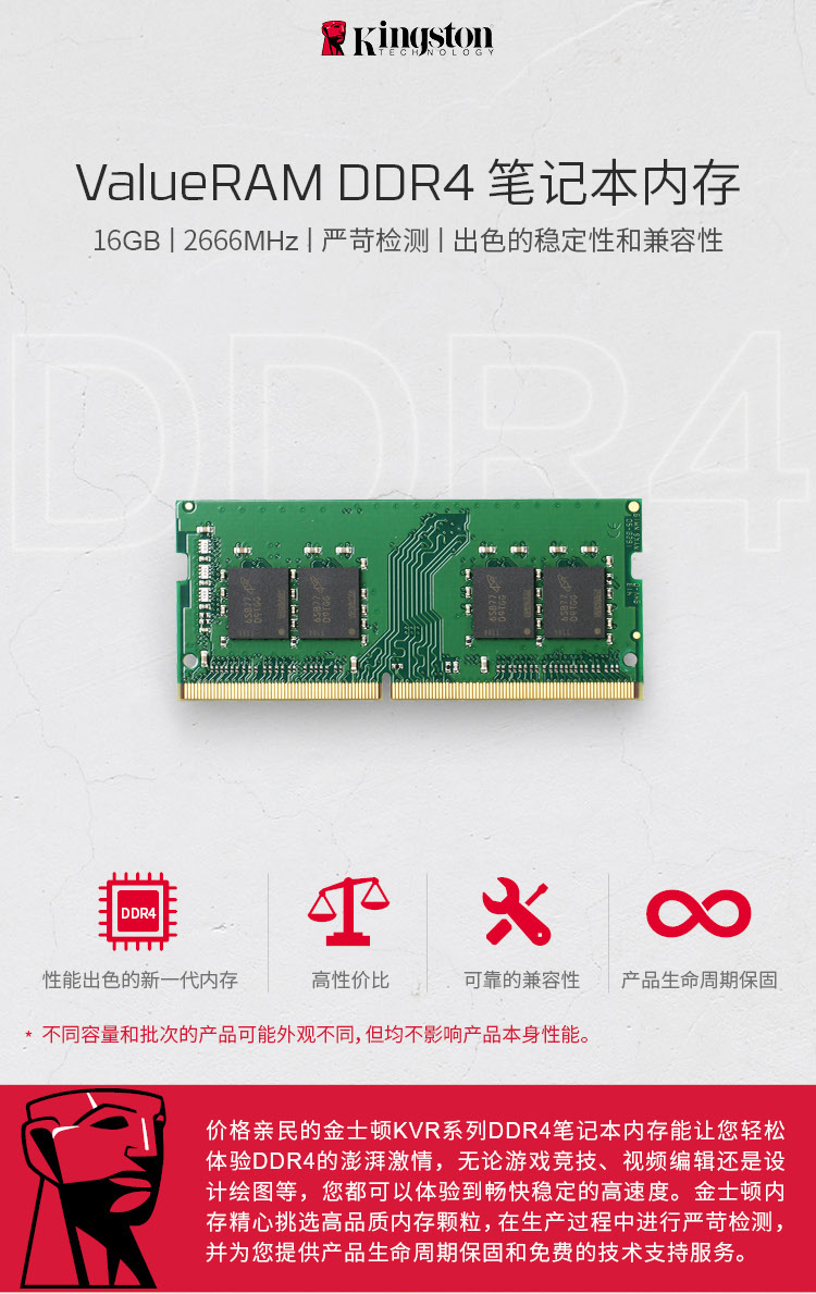 金士頓DDR4 2666 16GB筆記本內(nèi)存條