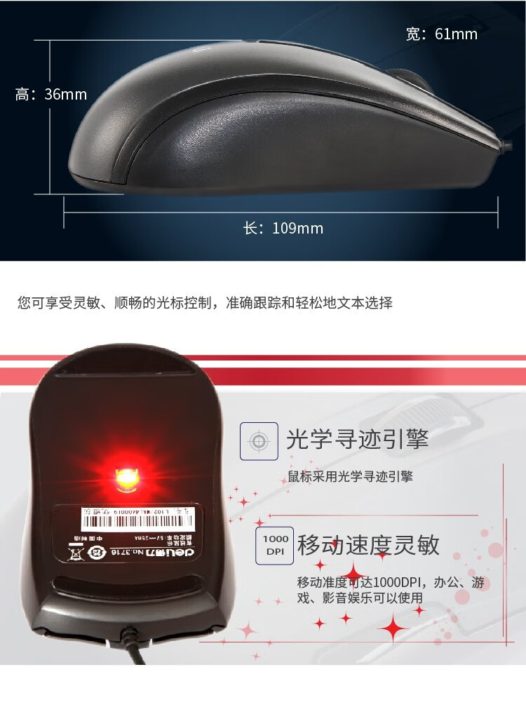 得力3715有線鼠標
