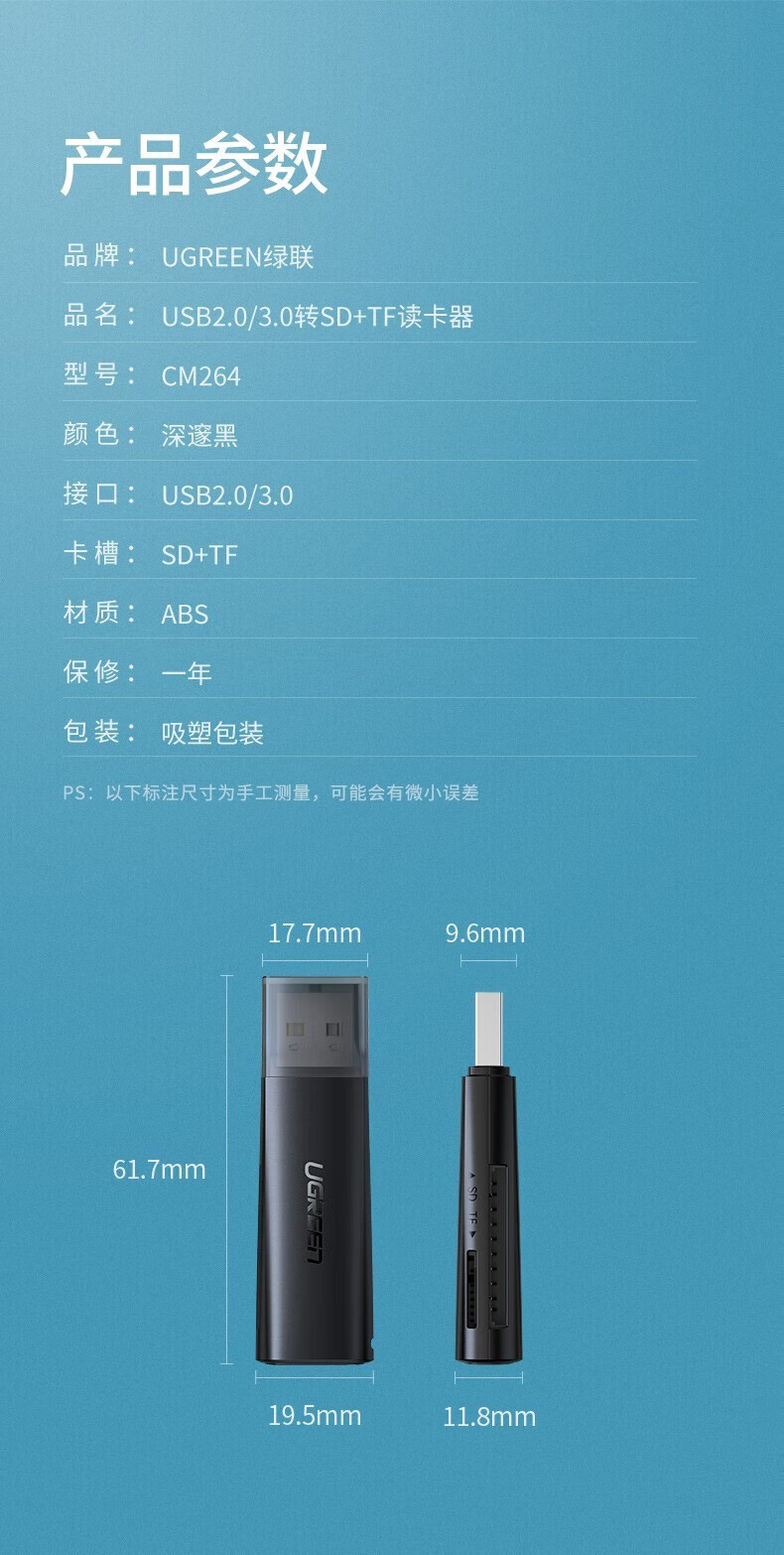 綠聯USB3.0多功能讀卡器0.5M/30229