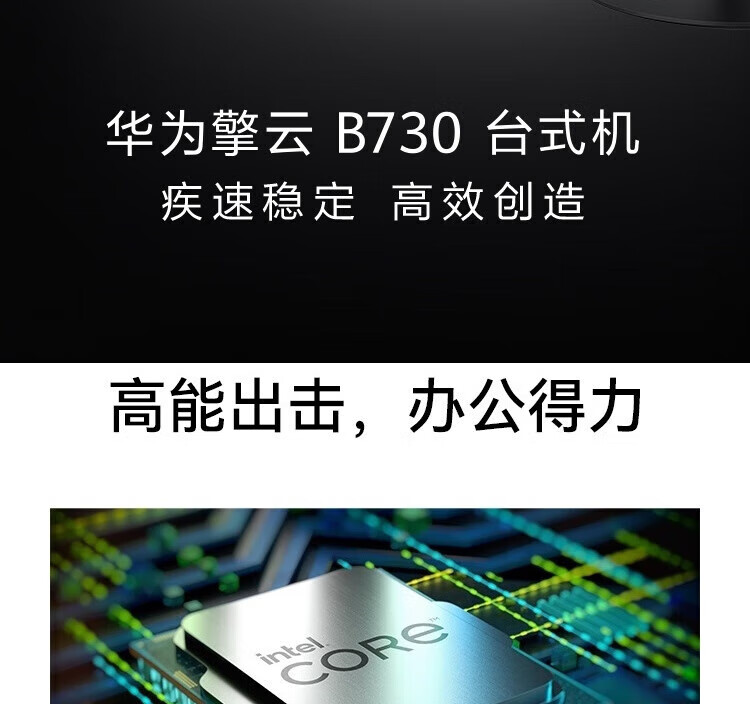 華為擎云B730-K7851B臺式電腦(Inteli7-12700+8GB+512GB)有線鍵鼠/16.6L/WIN11家庭版/23.8顯示器