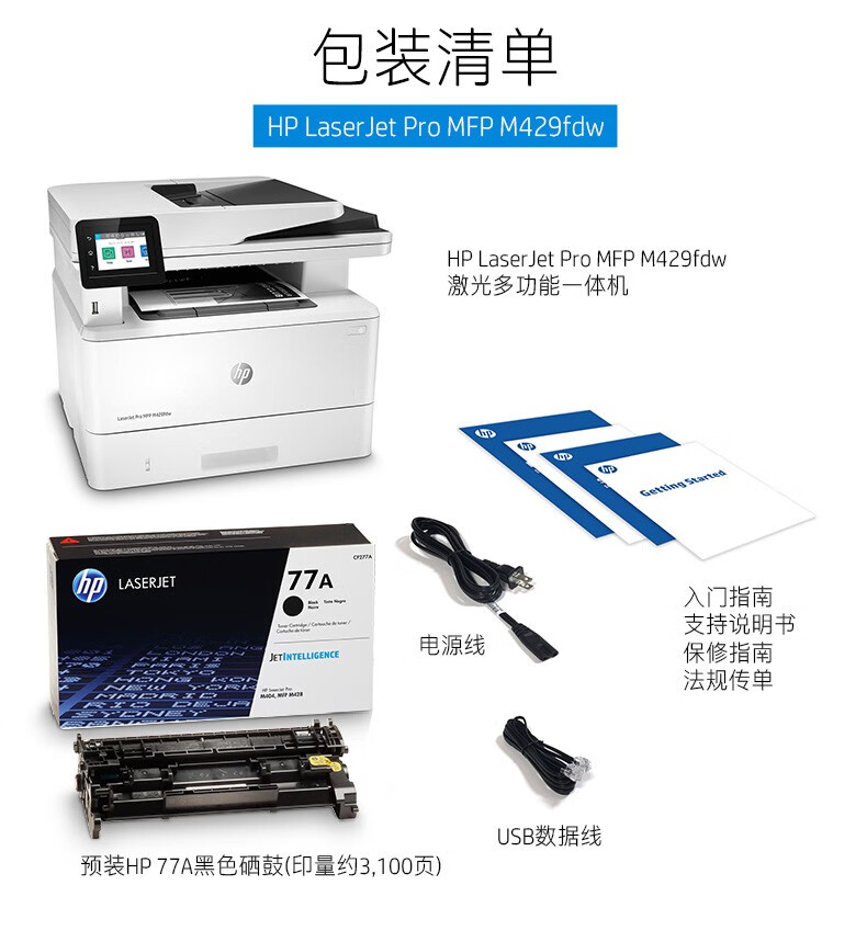 惠普(HP)3104fdw激光打印機辦公自動雙面 打印復印掃描傳真自動輸稿一體機無線家用辦公