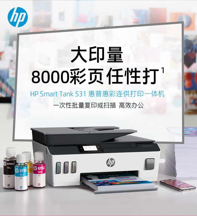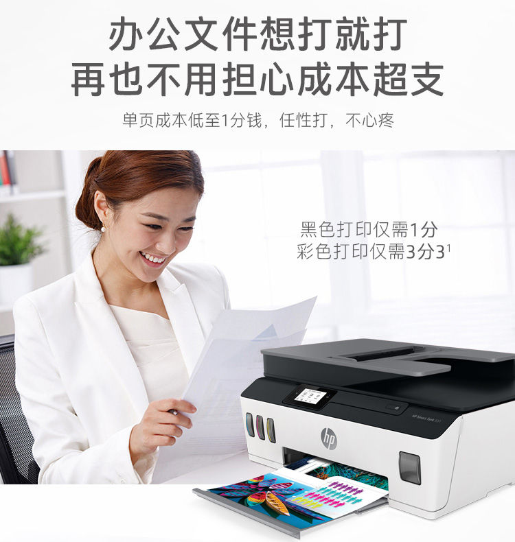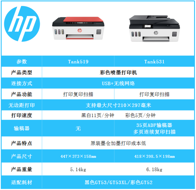 惠普tank531 A4彩色噴墨連供一體機:打印速度 :黑色:11頁/彩色:5頁