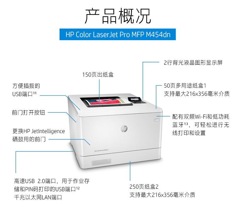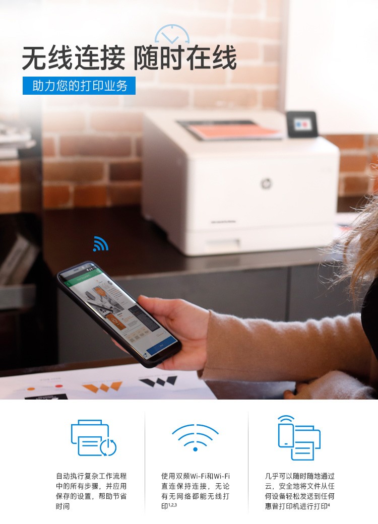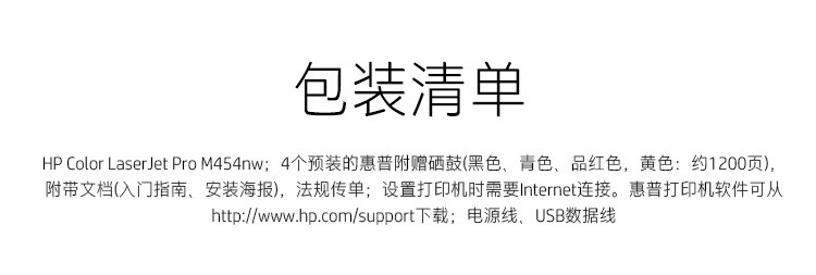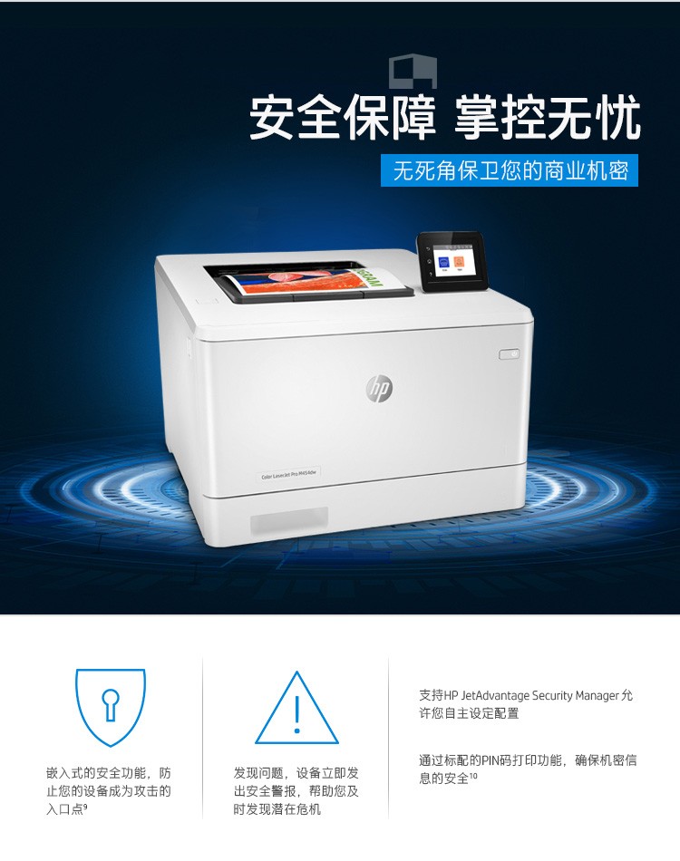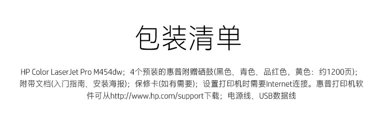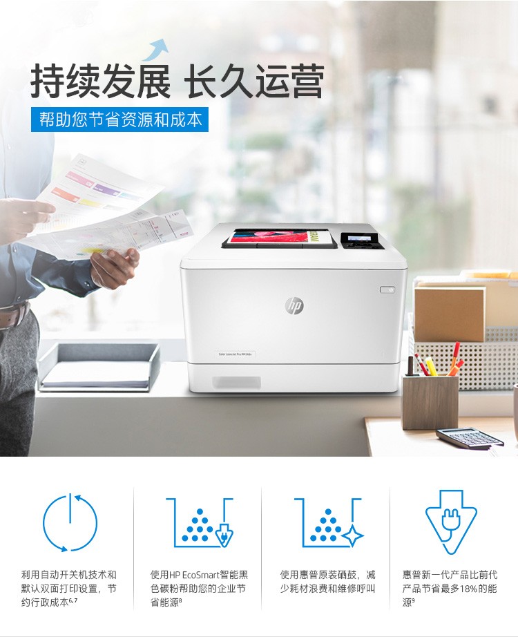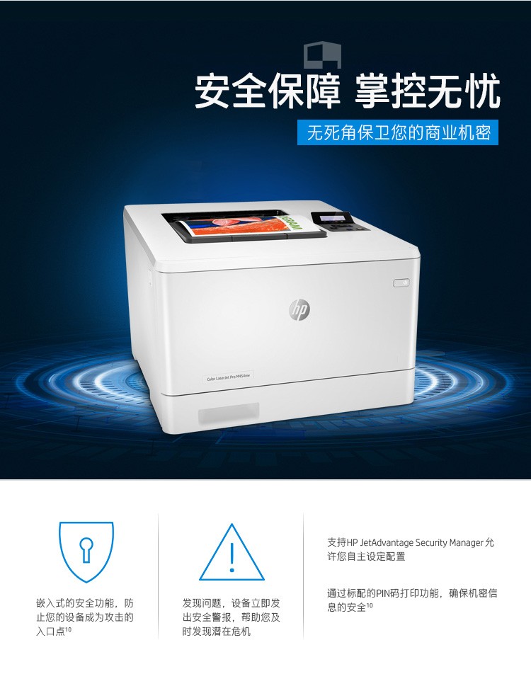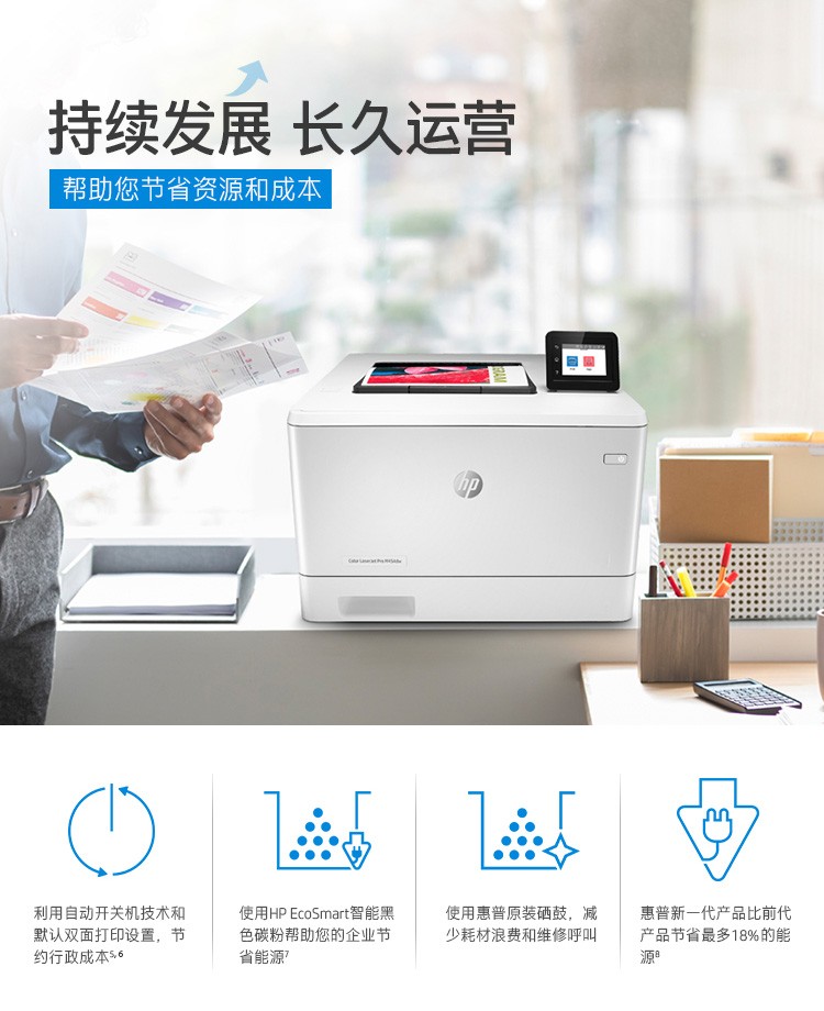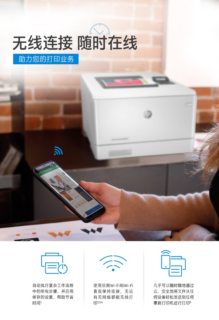 惠普454dn彩色激光打印機:有線網(wǎng)絡(luò)及雙面