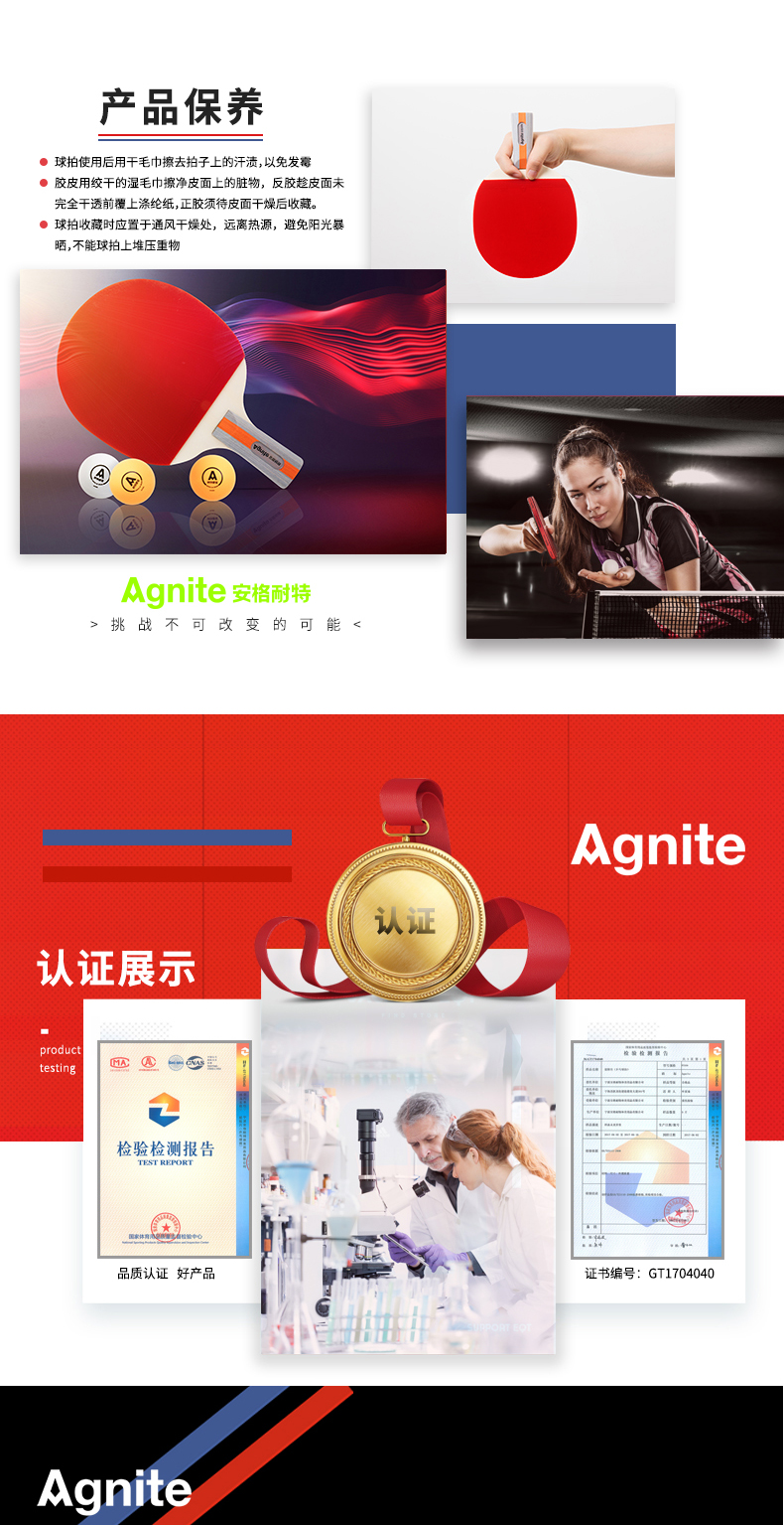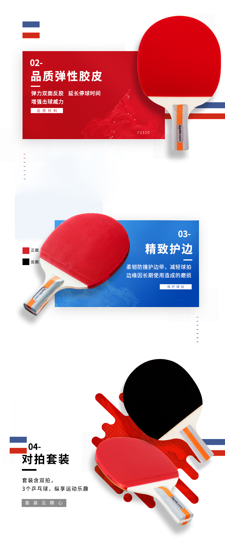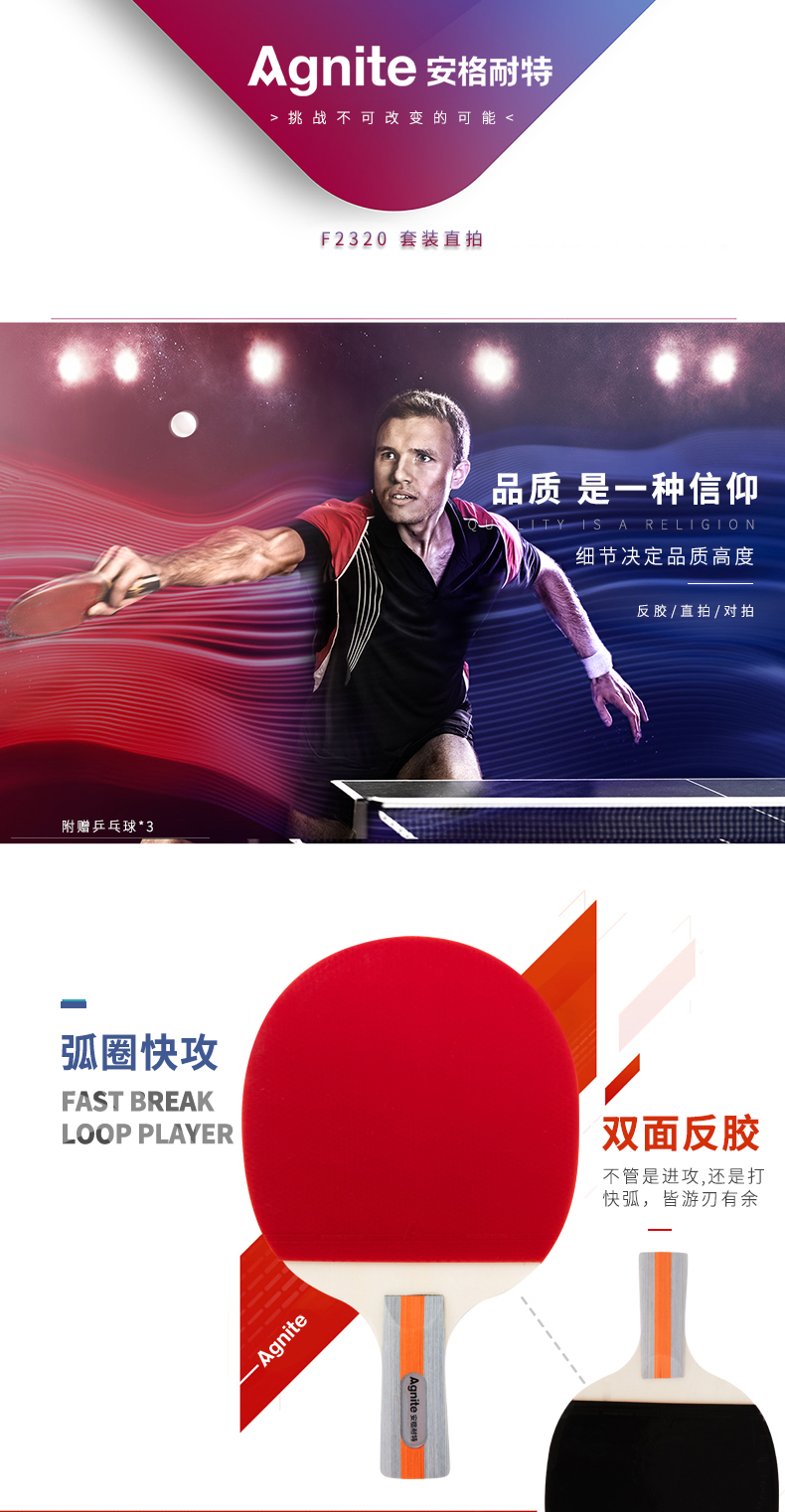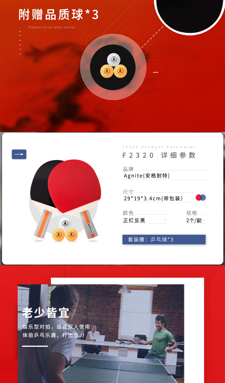 安格耐特F2320乒乓球拍(正紅反黑)(2個/副)