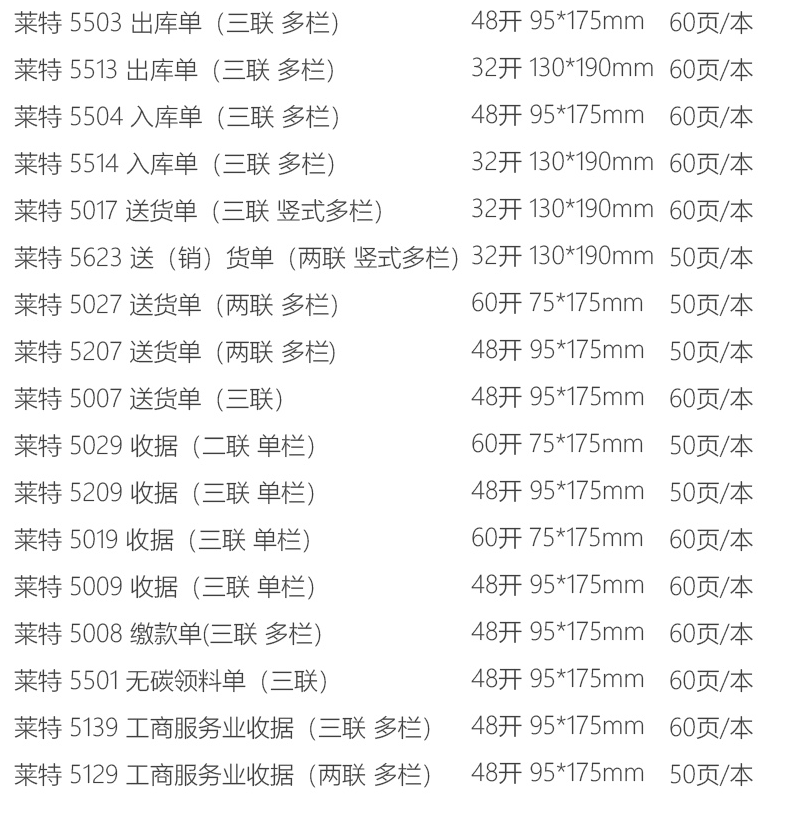 萊特5501三聯(lián)無碳復(fù)寫領(lǐng)料單48K*10