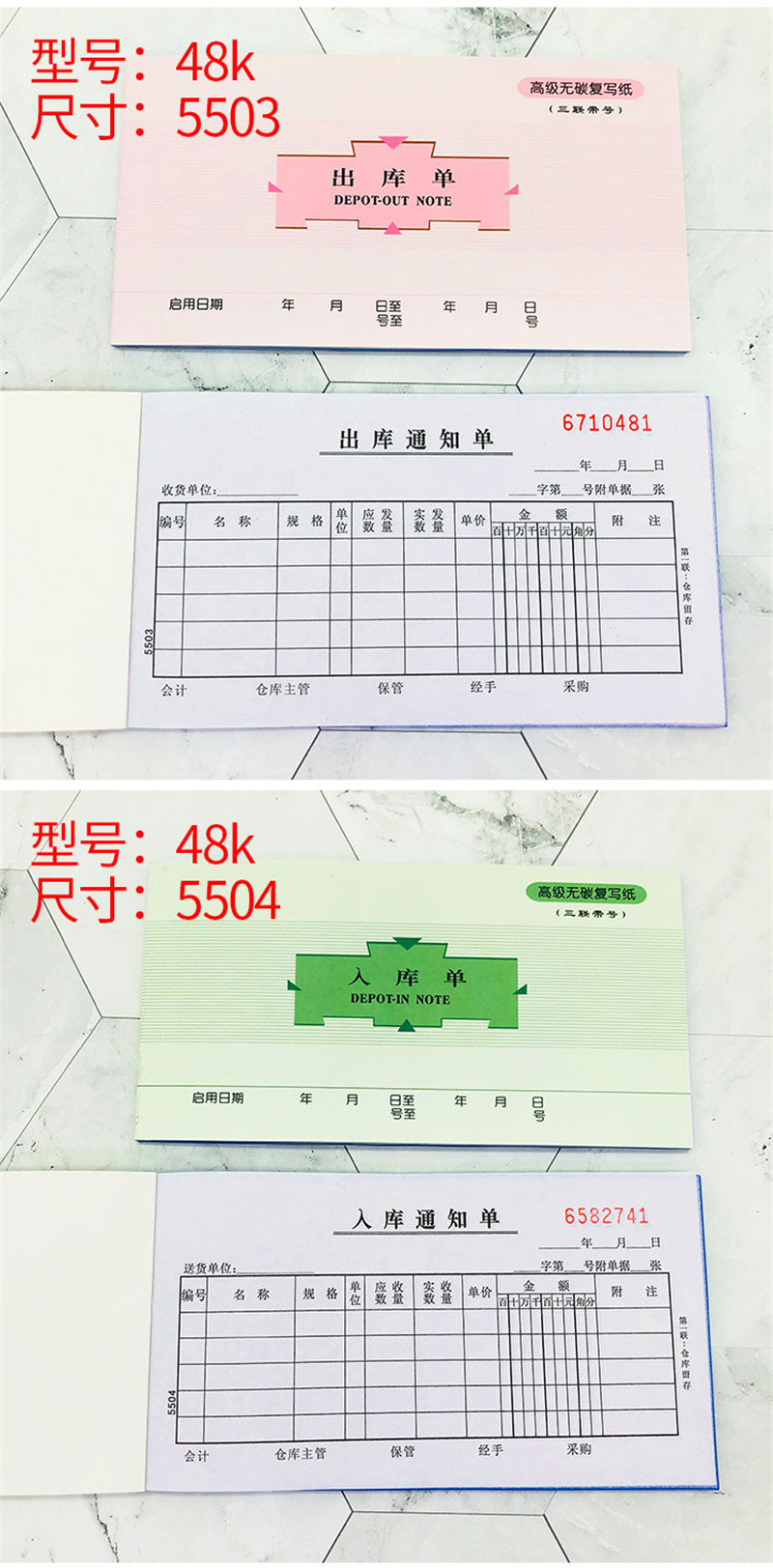 萊特5504三聯(lián)無碳復(fù)寫入庫單48K*10