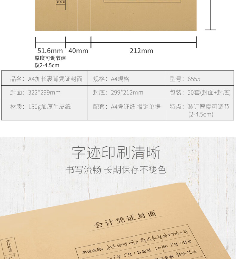 西瑪A4豎版裹背憑證封面加厚150g*25套6555