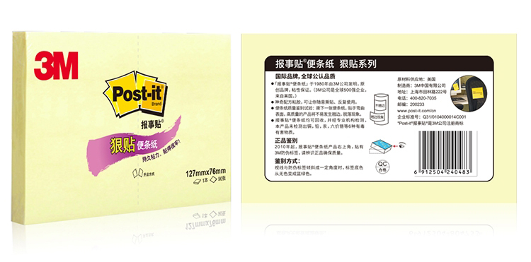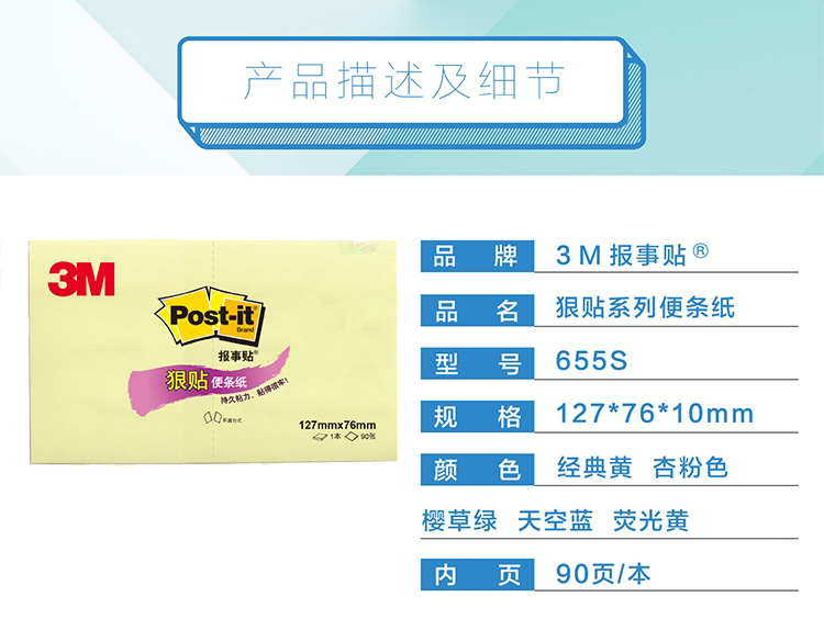 3M便利貼655大號長方形127x76mm黃色