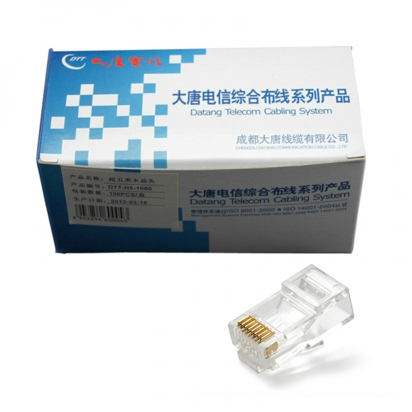 大唐電信超六類非屏蔽水晶頭100個/盒