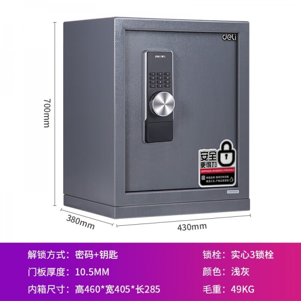 得力3643A電子密碼保管箱H480(淺灰)