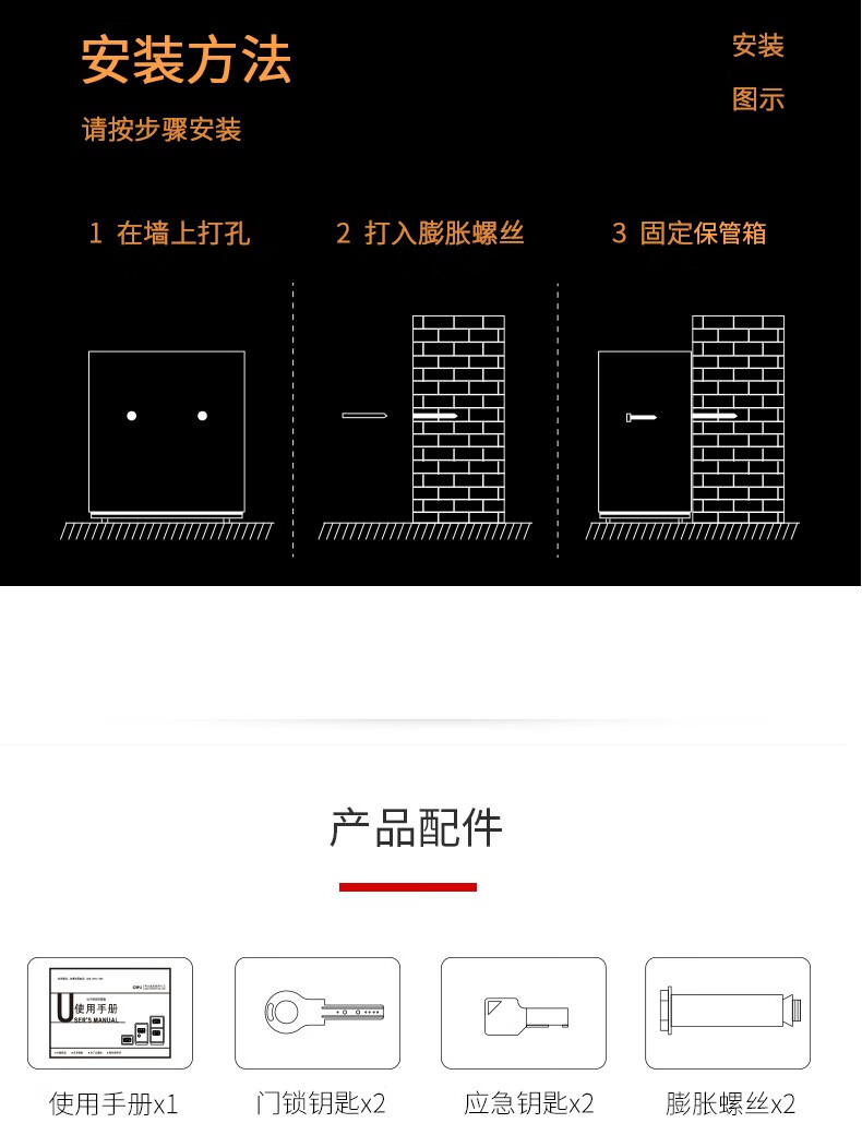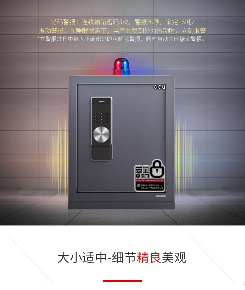 得力33559指紋密碼保管箱H250(黑色)