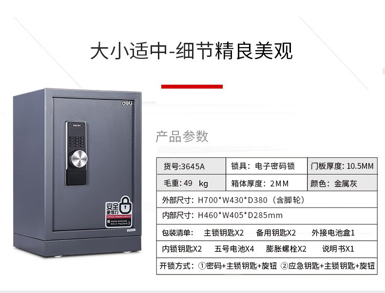 得力3645A電子密碼保管箱H695(淺灰)