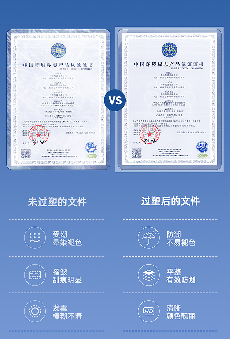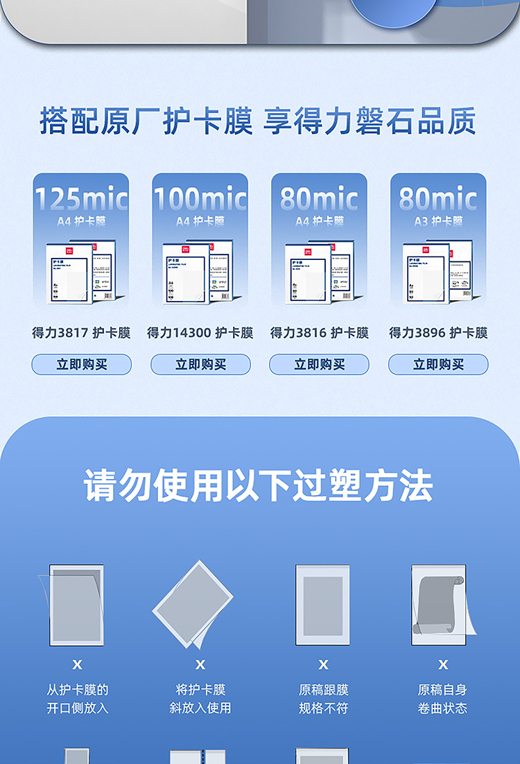 得力3896塑封膜*50張/盒