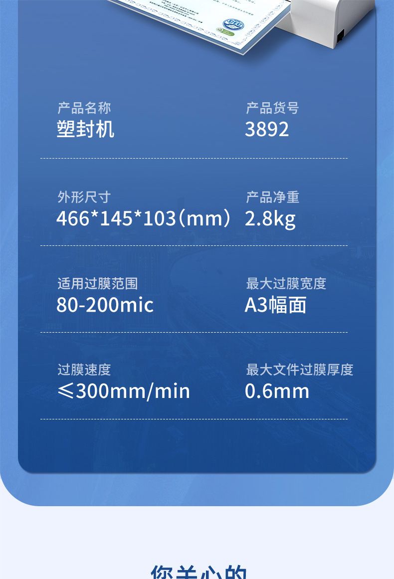 得力3892塑封機