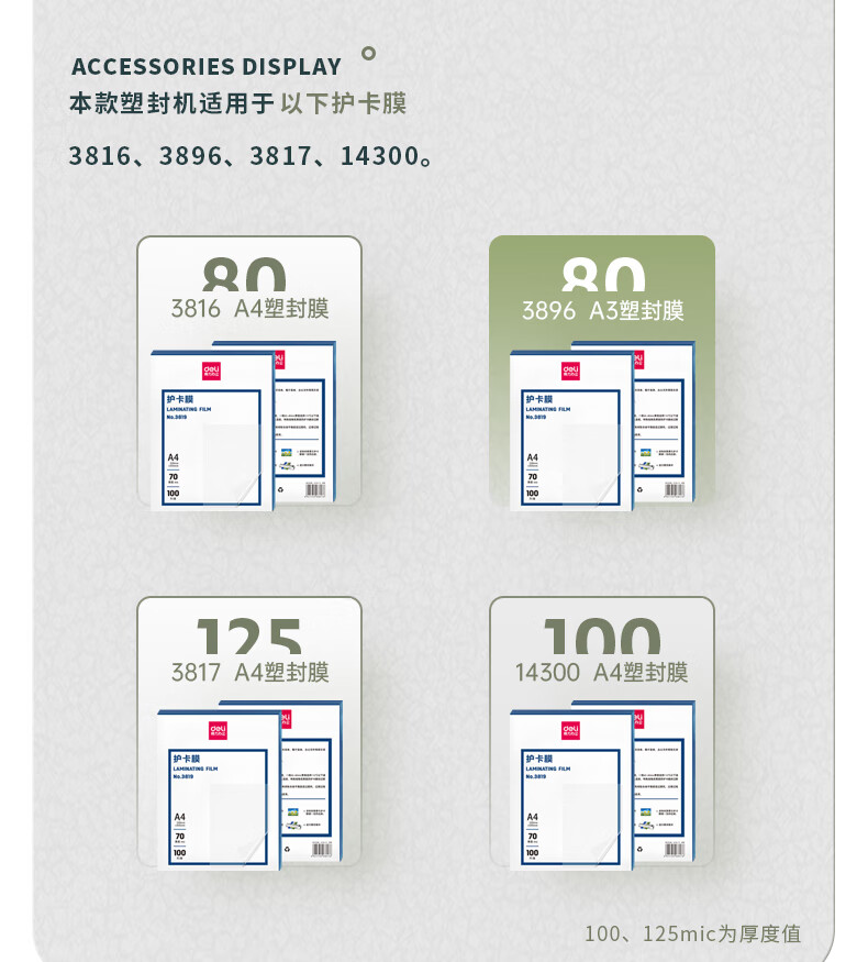 得力3816塑封膜A4 8S(透明)(100片/包)