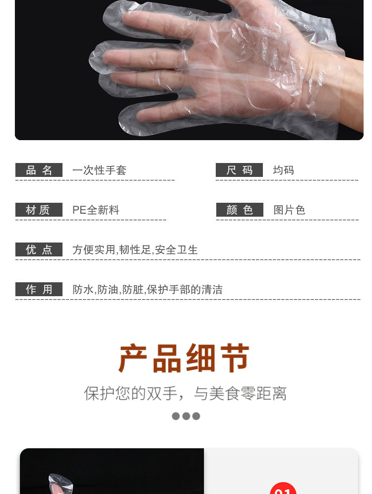 伽護(hù)一次性PE手套(100只/袋)