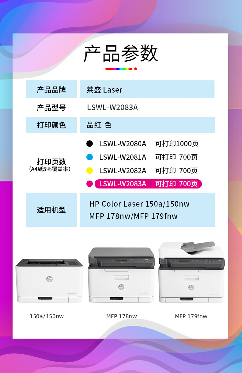 萊盛 LS-W2083A(118A)粉倉 品紅色 全新 有芯片 0.7K