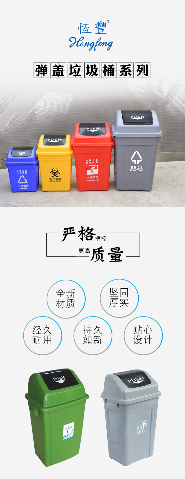 恒豐40型彈蓋垃圾桶35L(黃色)380*270*580mm