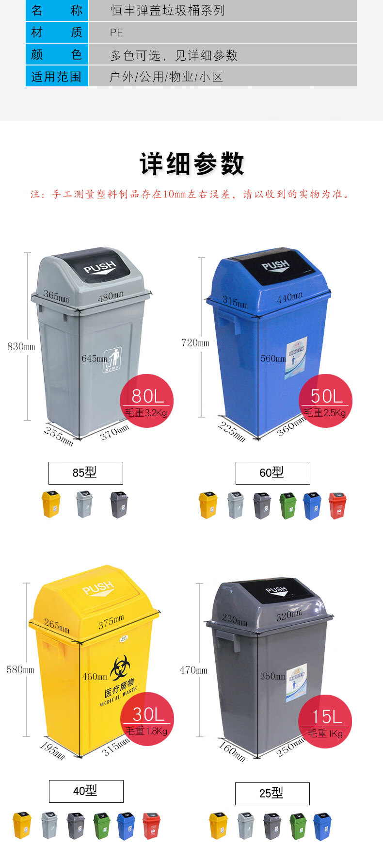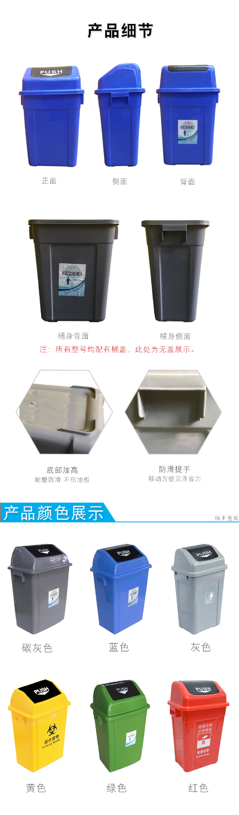 恒豐0351生活垃圾桶粉藍色(230*265*350)