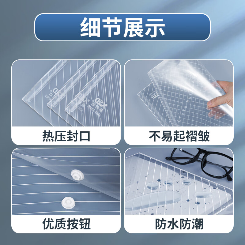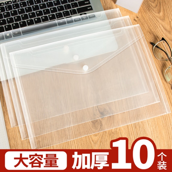 新時達10個文件袋透明A4加厚檔案按扣袋資料袋
