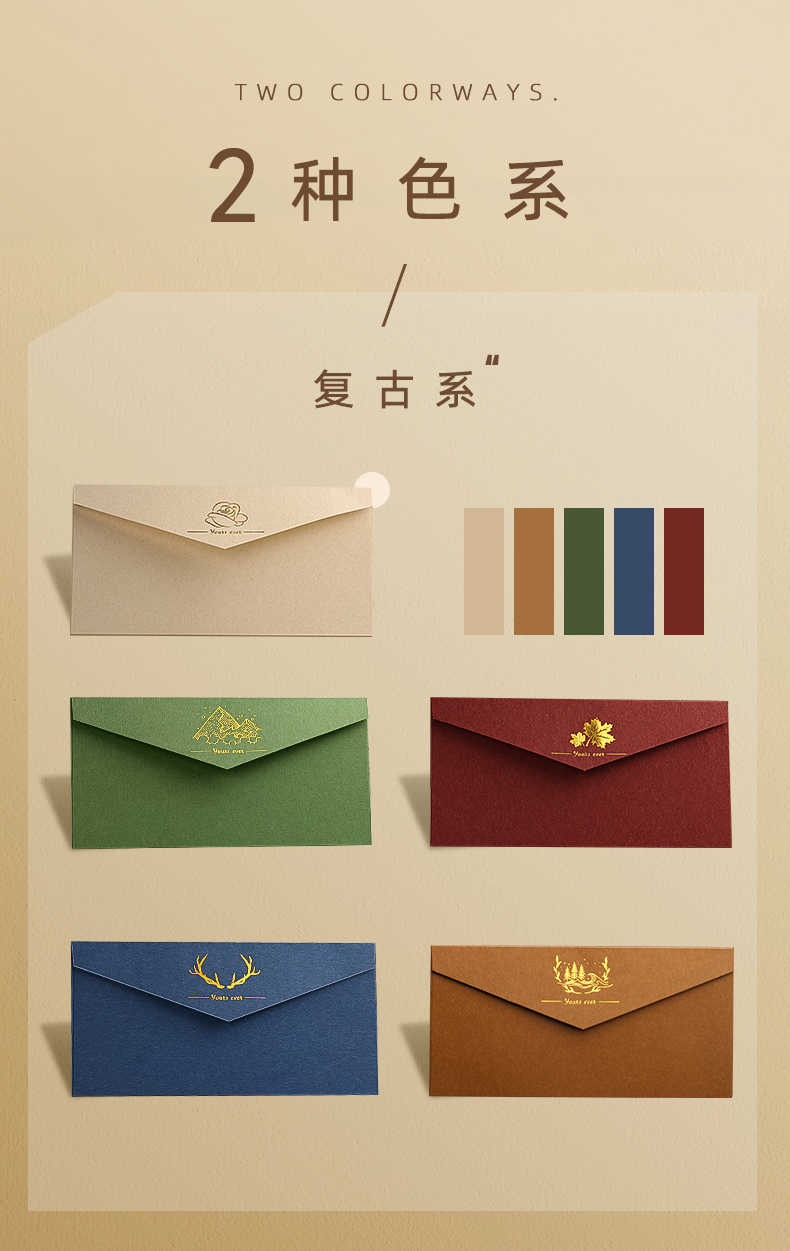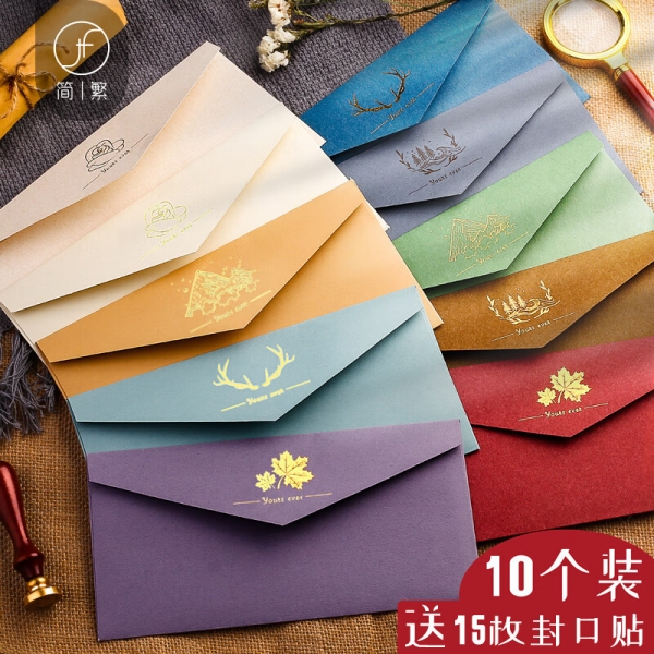 簡(jiǎn)繁 10色混裝簡(jiǎn)約復(fù)古信封信紙手寫(xiě)信箋紙賀卡明信片送老師生日禮物邀請(qǐng)函