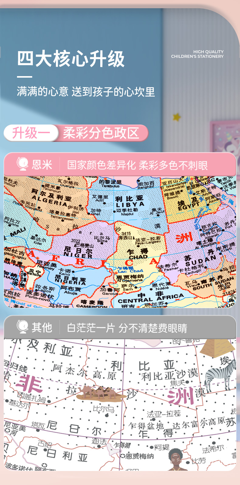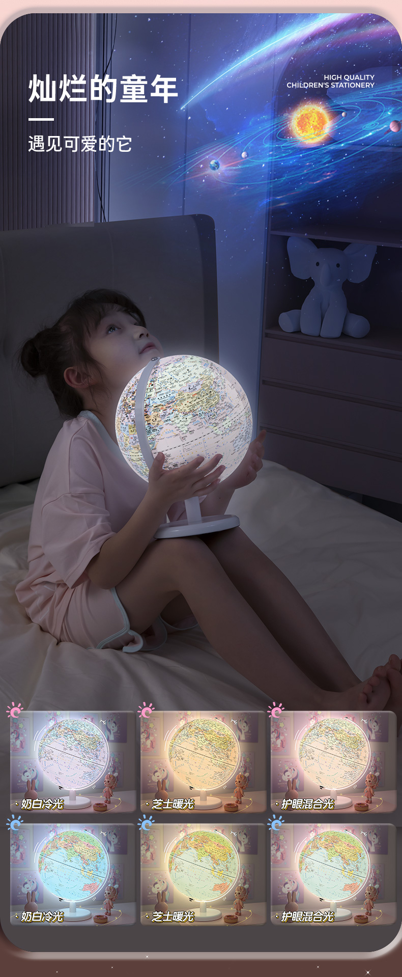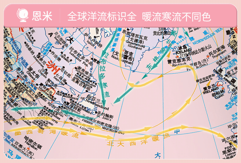 恩米科技YSE38-金屬底座馬卡龍藍(lán)地球儀-20cm-弓形扁鐵支架-三檔燈帶AR-童趣禮盒裝