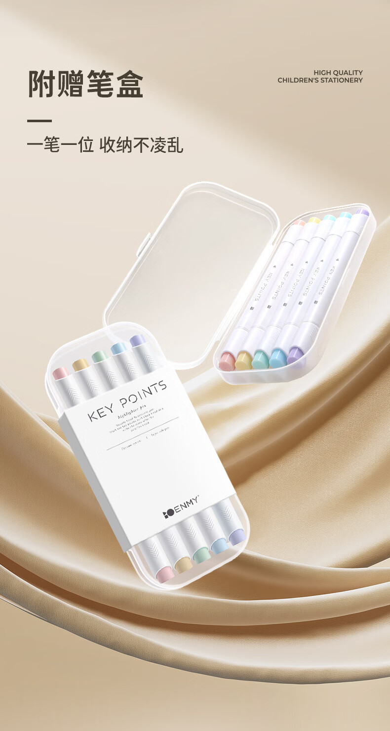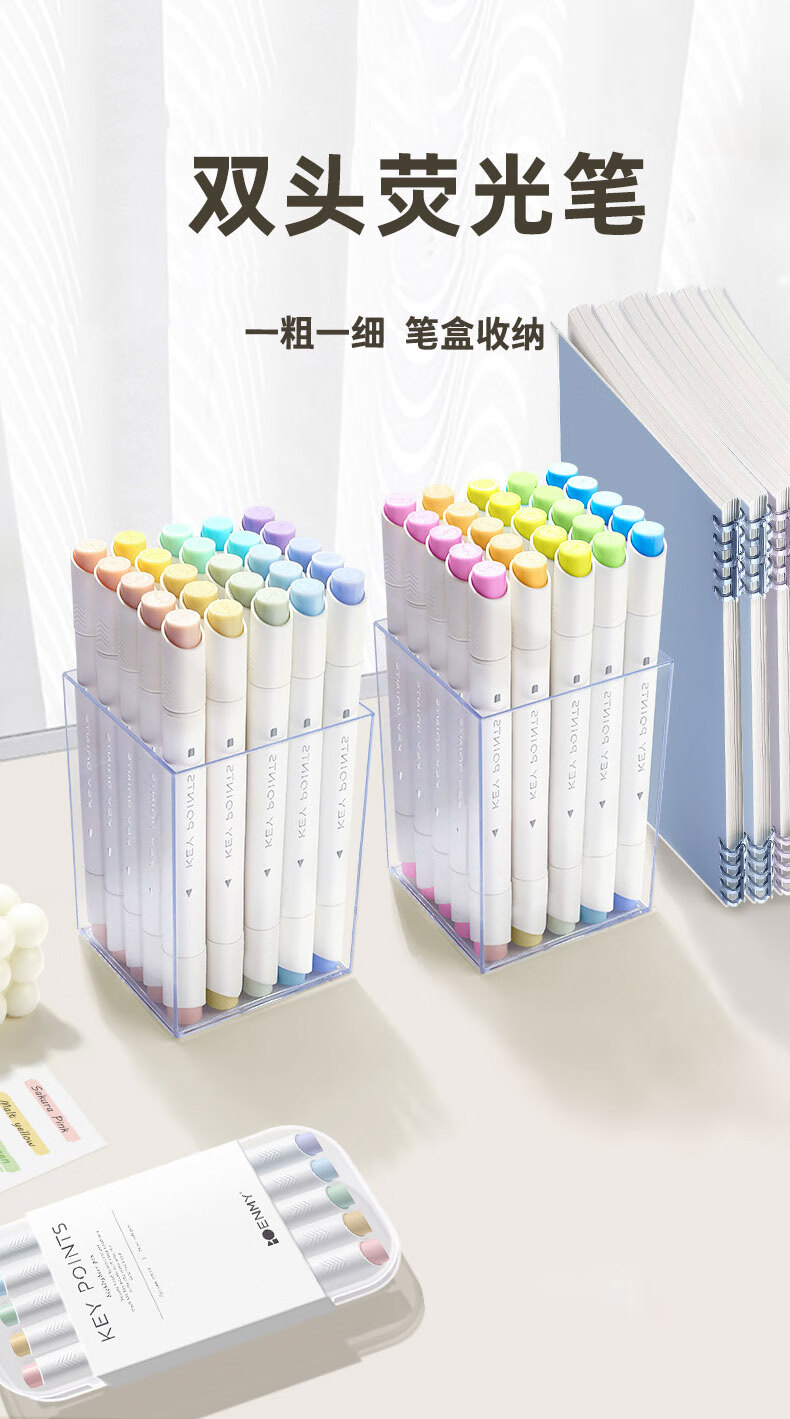 簡繁 5色莫蘭迪圓桿熒光筆套裝 新型軟頭彩色水性記號筆學生課堂重點標記筆大容量雙頭手賬筆 開學文具禮物