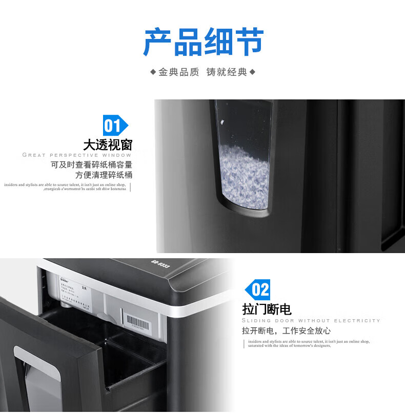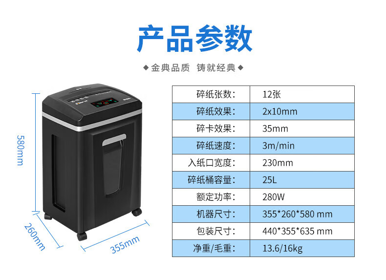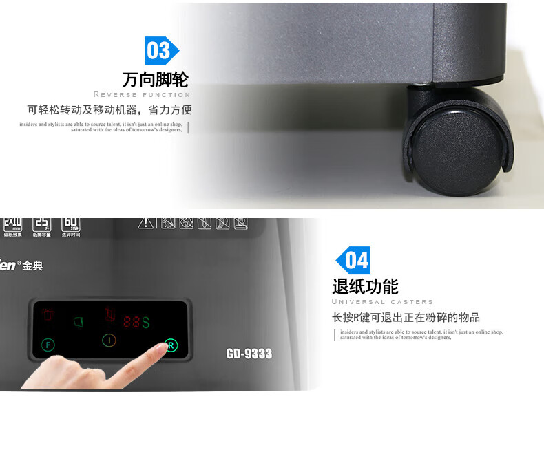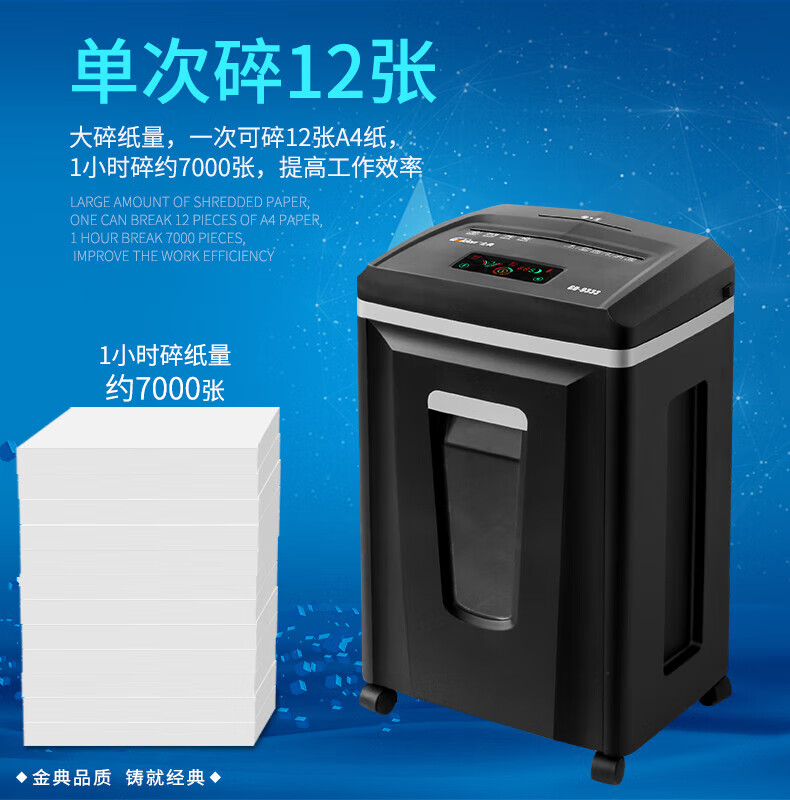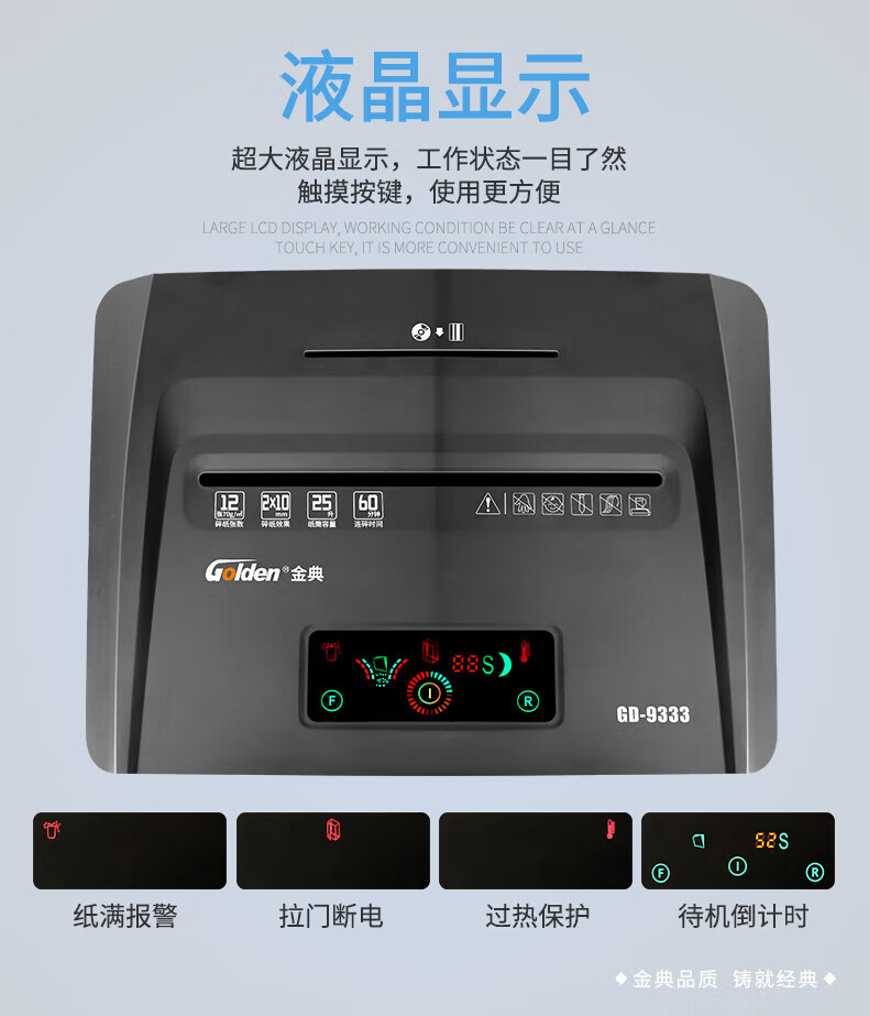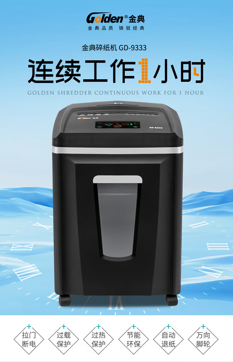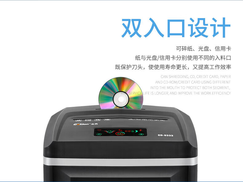 金典(GOLDEN)GD-9333碎紙機商用辦公 雙入口可碎紙光盤卡單次12張連續工作1小時大容量25L